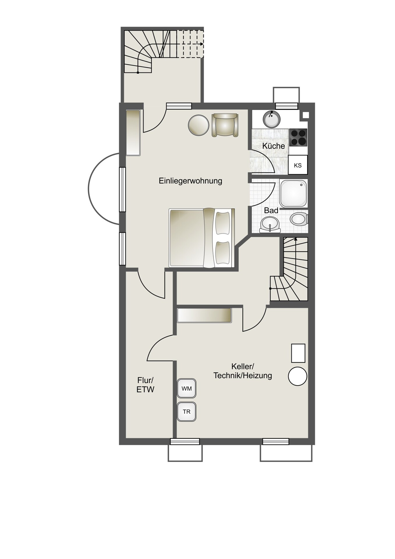 Untergeschoss – Platz für Ordnung/Technik und Vermietung