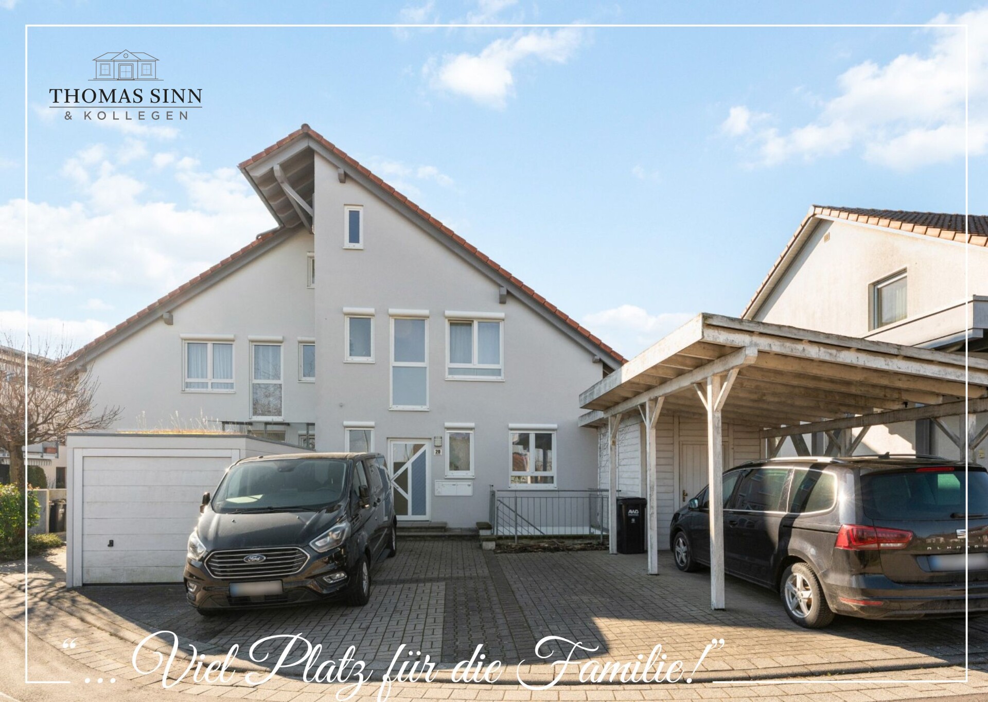 Ihre Fahrzeuge parken Sie bequem vor dem Haus auf den beiden Stellplätzen oder geschützt unter dem Carport.
