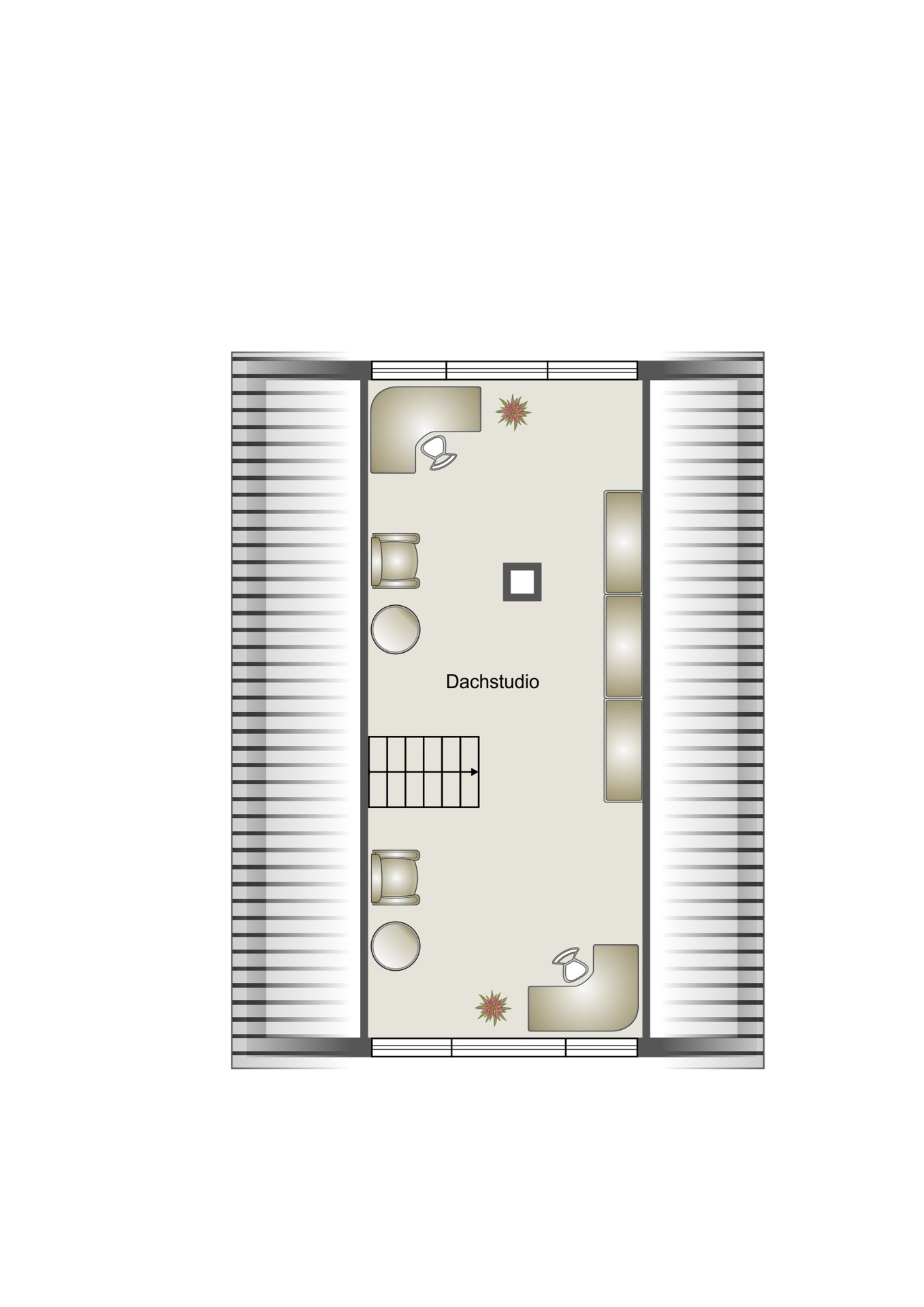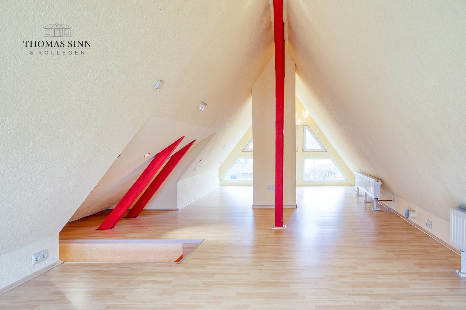 Im weiteren Treppenverlauf wird das DG erschlossen. Durch den Einbau der beiden großen Giebelfenster ist hier ein riesiges, helles Dachstudio entstanden. Ein schöner Bereich für Hobbys, die Eltern oder ggf. auch als eigenes Refugium für einen Jugendlichen.