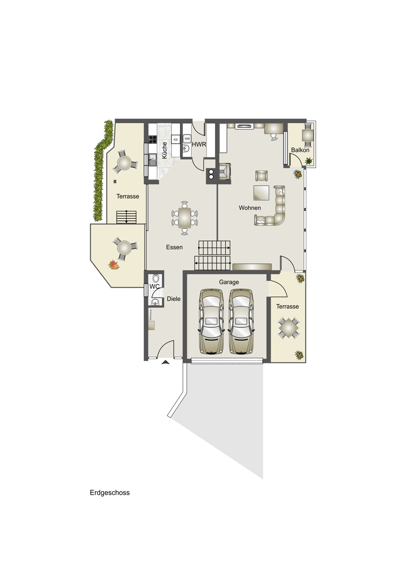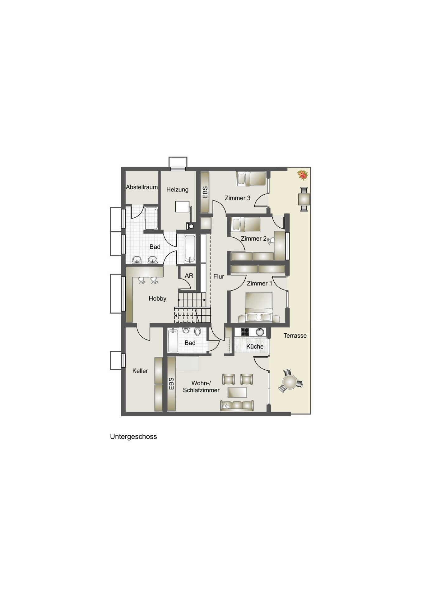 - ein Abstellraum (Sauna-Einbau vorbereitet)