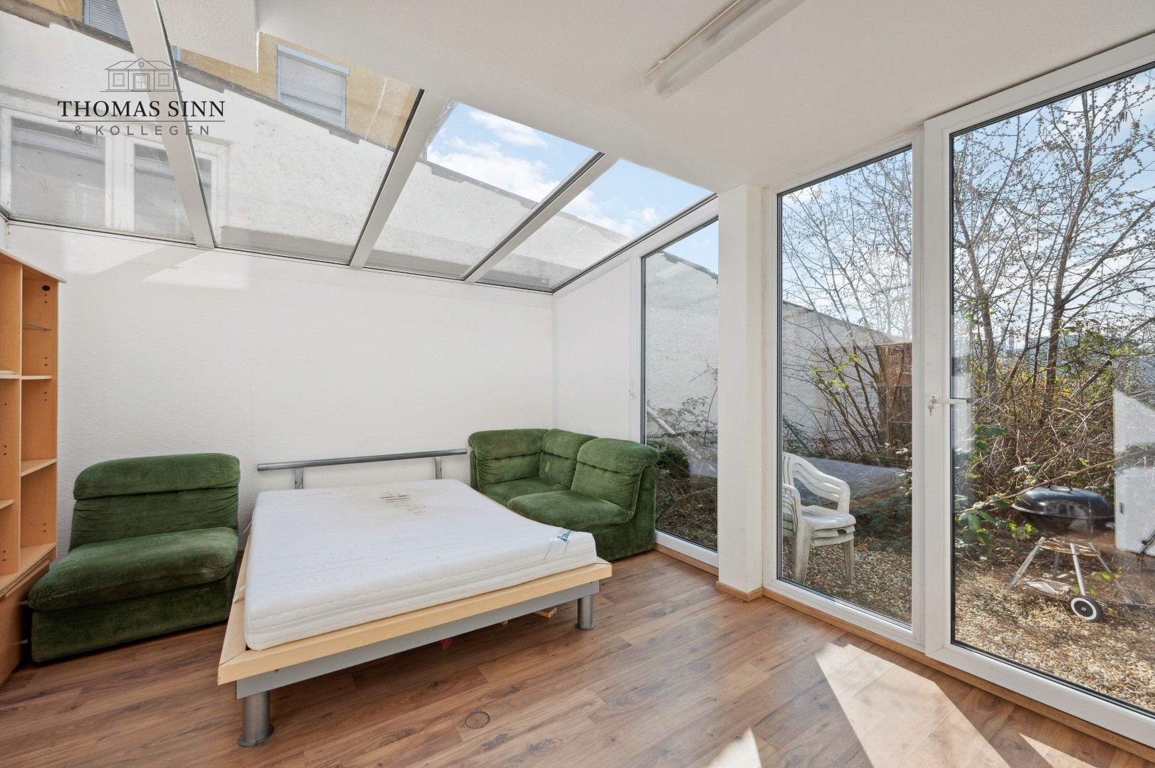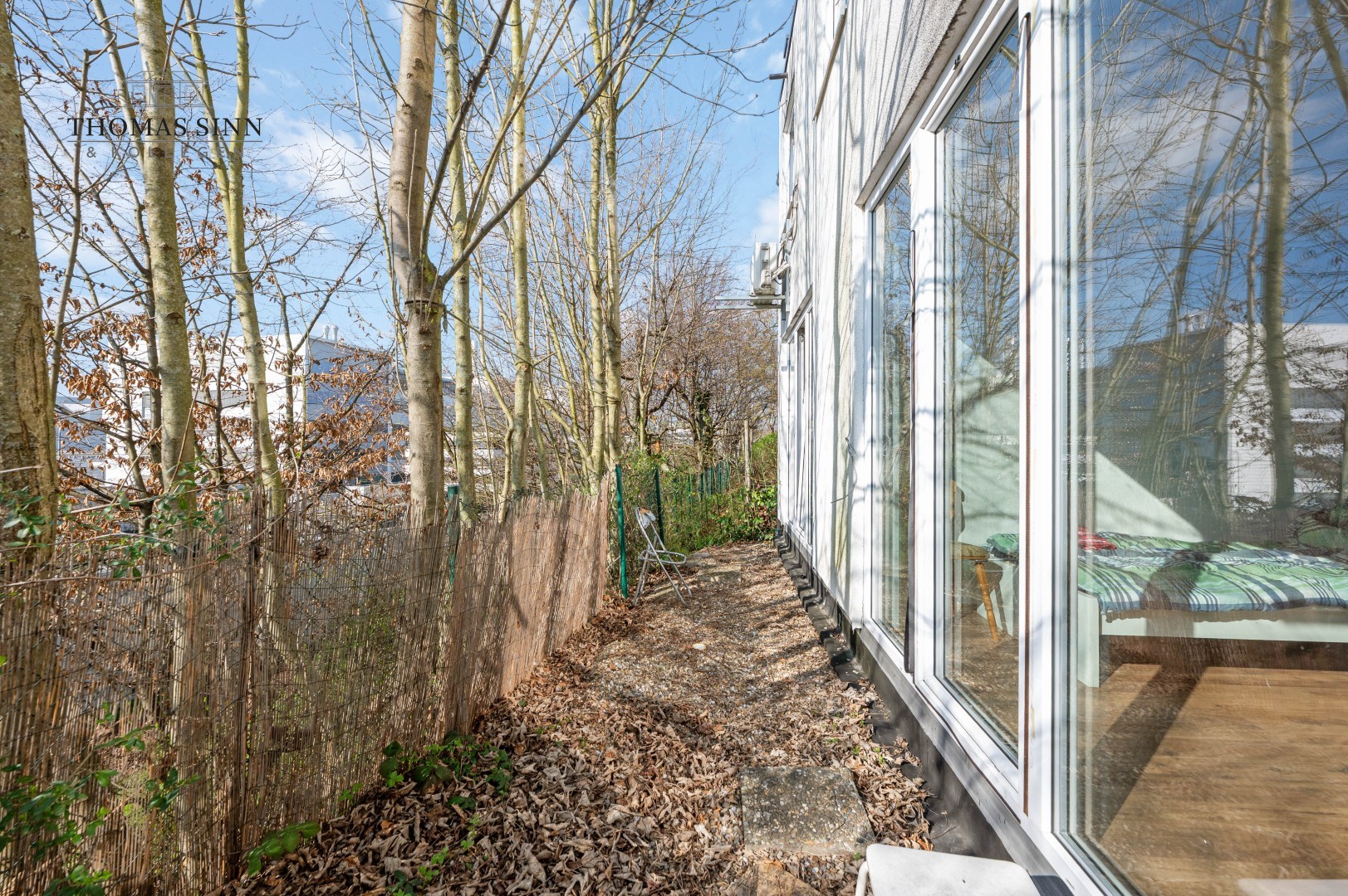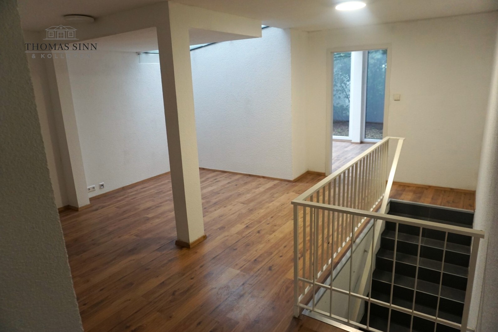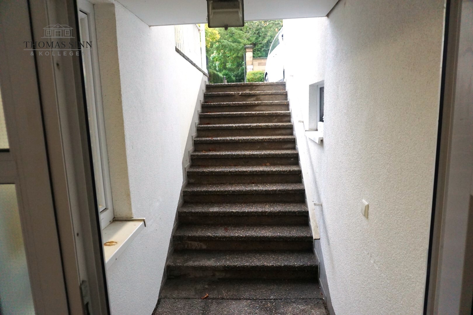 Über die Innentreppe im Haus oder über die separate Außentreppe wird das Garten-/ und Kellergeschoss erschlossen. Diese ehemalige Bürofläche besteht ebenfalls aus 4 Räumen, einer Küche und einem großen, neuen Bad. Ein Bereich ist wintergartenähnlich umgebaut worden. Ein weiterer Abstellraum ist unter der Garage untergebracht. Über die bodentiefen Fensterflächen haben Sie Zugang in den kleinen Grünbereich hinter dem Haus.