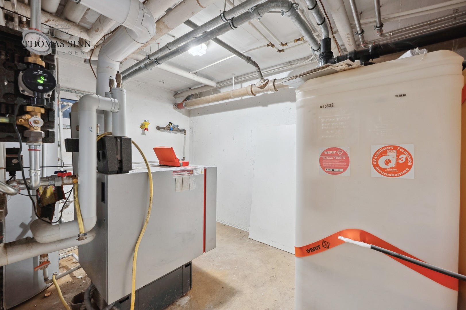 Eine weitere Treppe nach unten erschließt das Kellergeschoss mit Tiefkellerraum, Abstellraum der Waschküche sowie des Technikraums mit Heizung und den Öltanks.