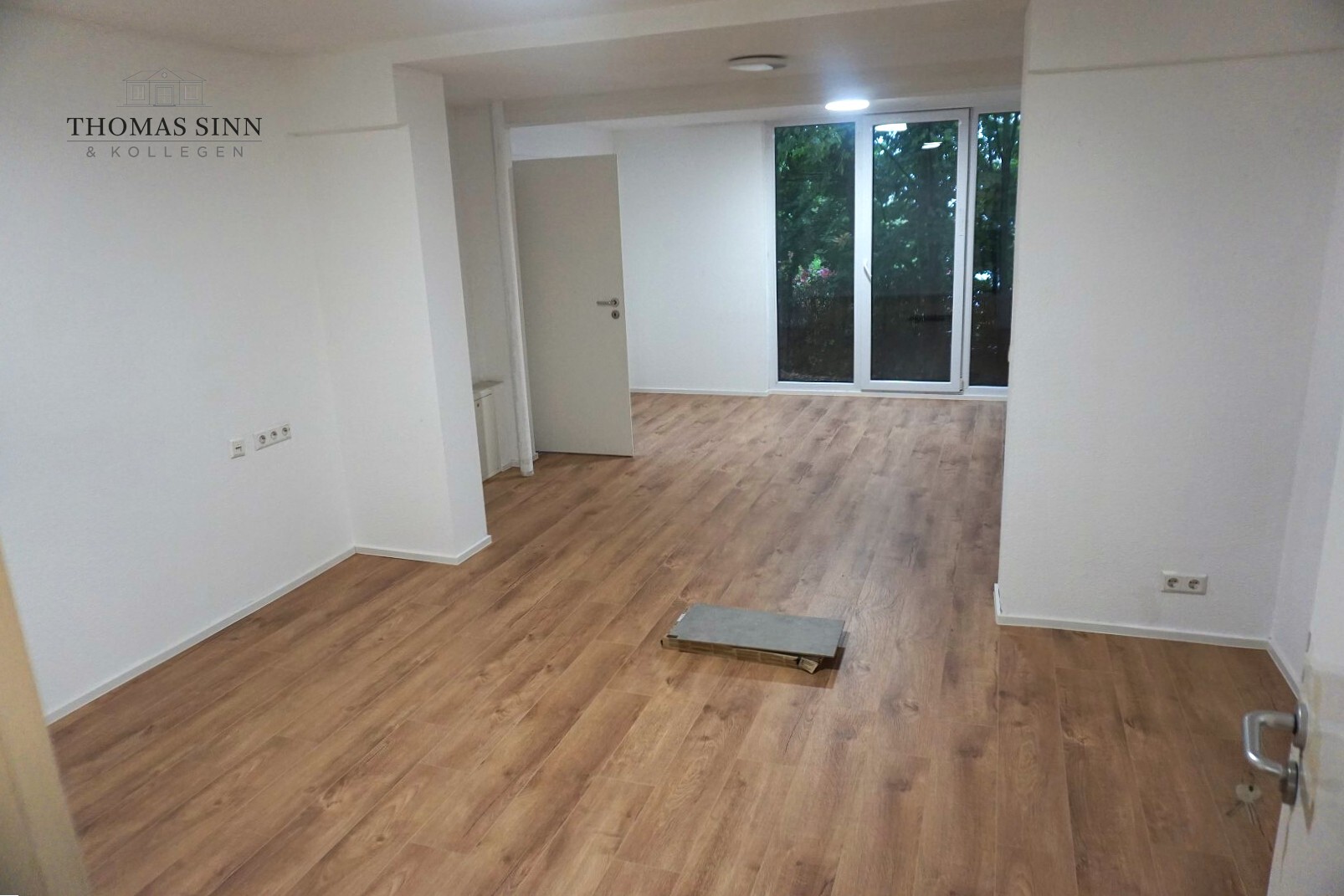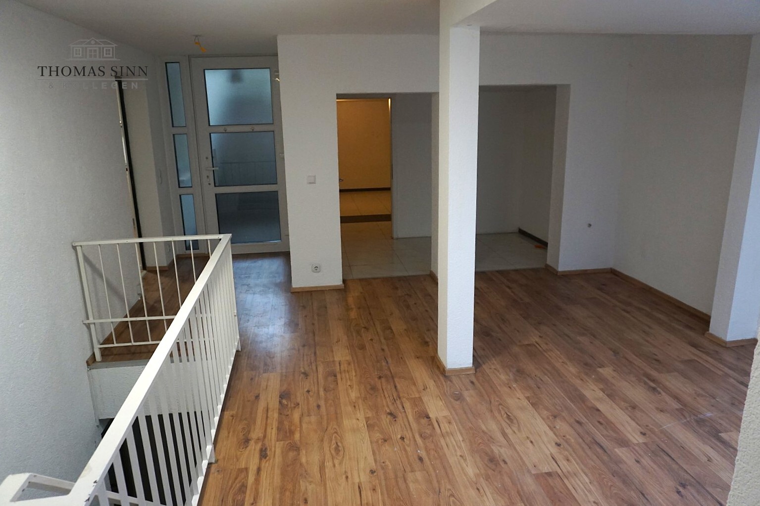Über den Haupteingang des Gebäudes erreichen Sie das EG mit 3 Räumen, Küche, Bad und WC. Die Räume sind aufgrund des Anbaus aus 2014 sehr tief und wurden nach der früheren, offenen Büronutzung nun mit Trockenbauwänden abgetrennt. Bis vor kurzem wurde diese Fläche wohnwirtschaftlich genutzt. Ein Teil ist aktuell noch bis 31.10.25 vermietet. Vom EG haben Sie direkten Zugang in die Garage.