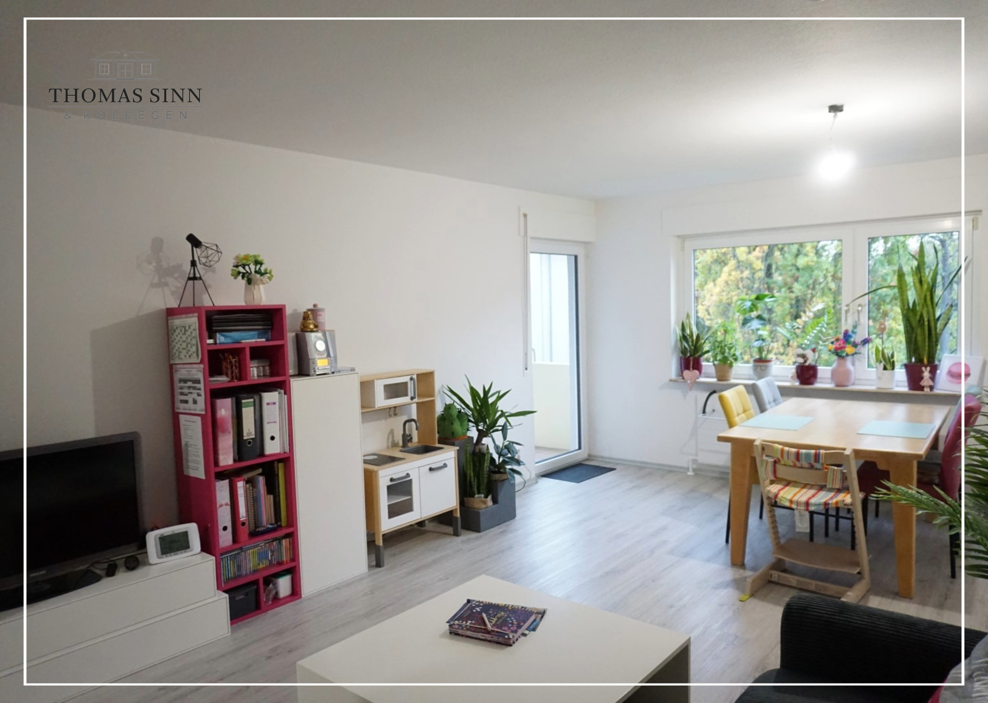 Gegenüber ist das großzügige Wohn-/Esszimmer mit Zugang zum Balkon von dem man einen schönen Ausblick auf den begrünten Innenhof hat.