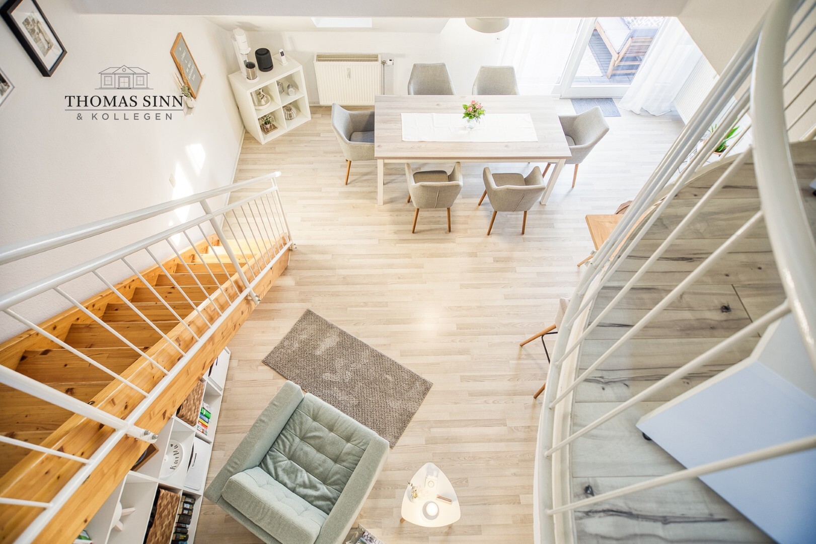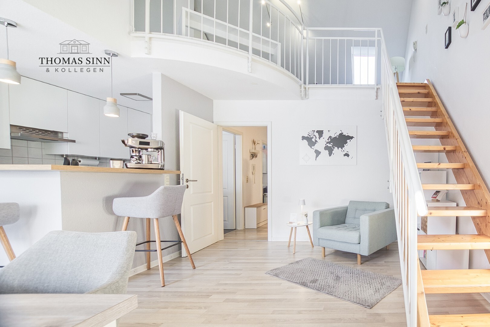 Vom Wohn-/Essbereich erreicht man über die freilaufende Treppe den offenen Galeriebereich. Die beeindruckende Blickachse ins Wohnzimmer wird Sie ganz bestimmt begeistern. Hier befindet sich ein zweiter Wohnbereich, der auch als separates Zimmer oder Schlafzimmer einteilbar wäre.