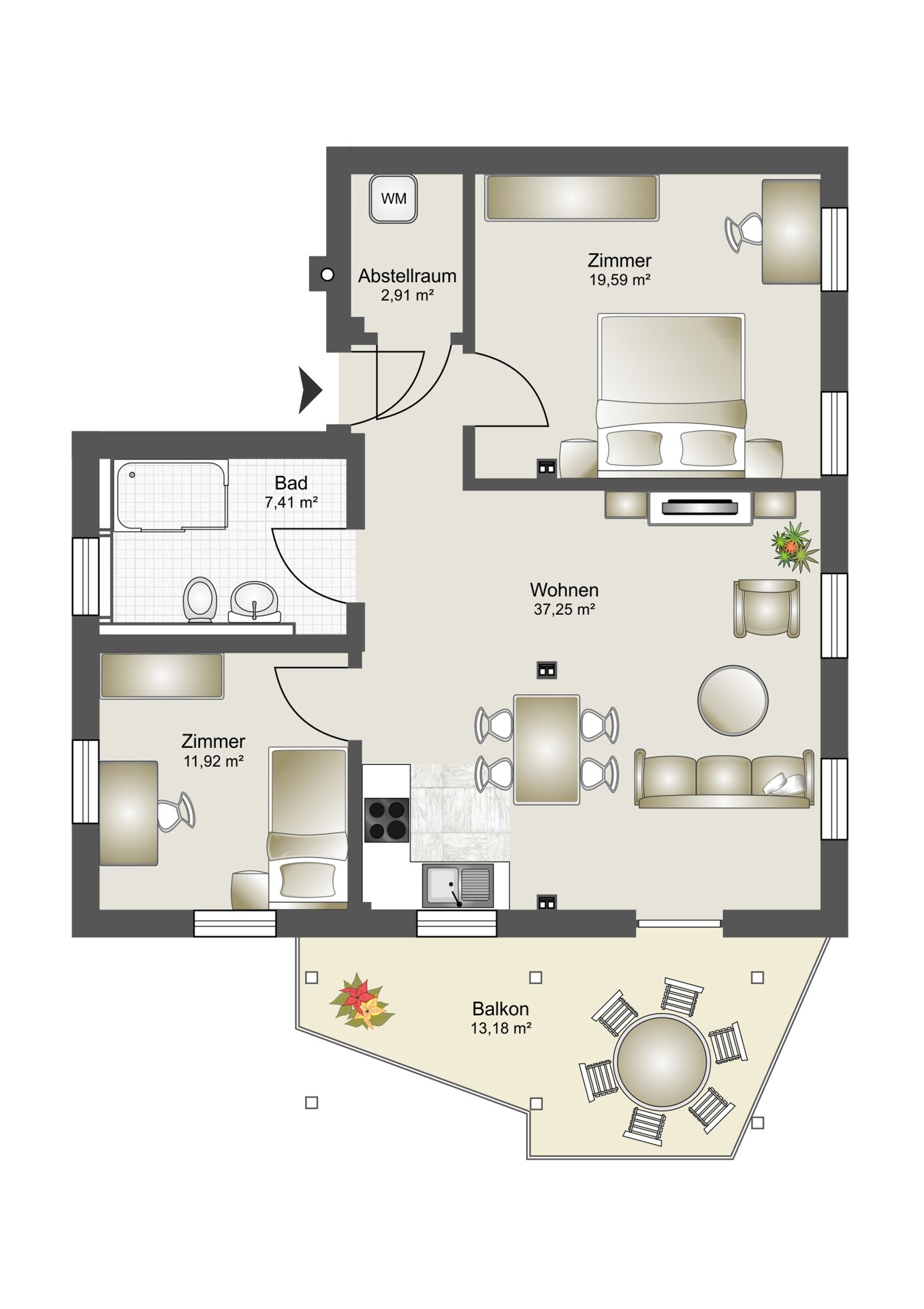 - großer Abstellraum mit Waschmaschine und Trockner Anschluss in der Wohnung